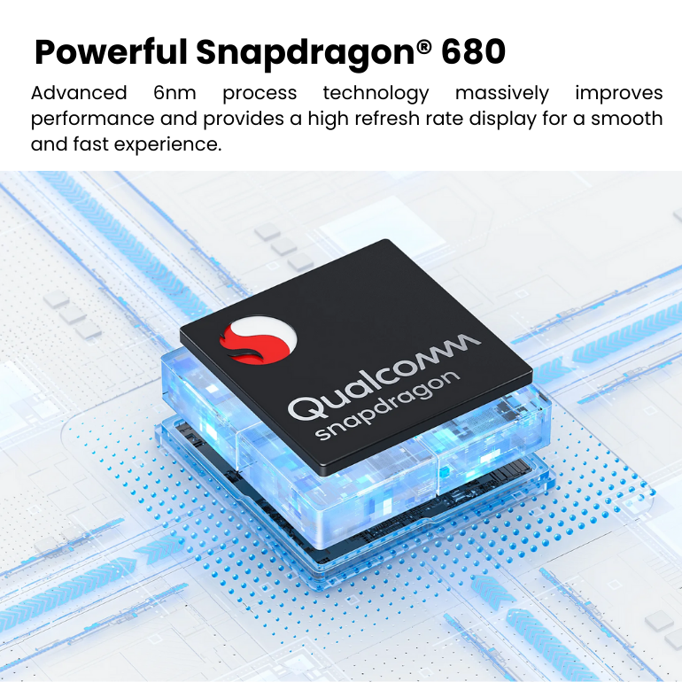 Powered by the Qualcomm Snapdragon 680 processor, it comes in configurations of 4GB, 6GB, or 8GB of RAM and offers 128GB or 256GB of internal storage, expandable up to 1TB via microSDXC.